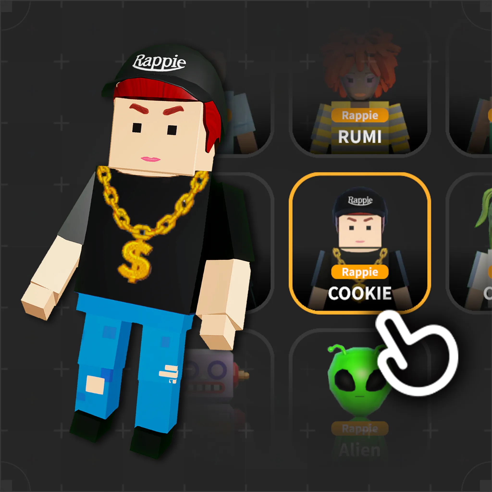 귀여운 스타일의 캐릭터들 중 한 명을 선택하세요. 멋지게 랩을 소화해줍니다.